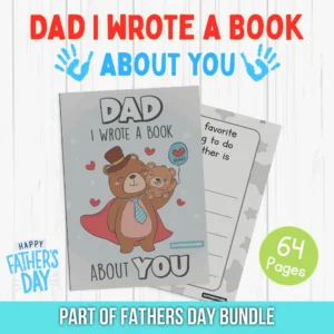 “Dad I Wrote a Book About You” is more than a keepsake — it’s a treasure trove of memories, love, and laughter, created entirely by your child. With thoughtful prompts, silly fill-ins, and sweet coloring pages, this guided activity book helps kids express everything they love about their father in their own words.